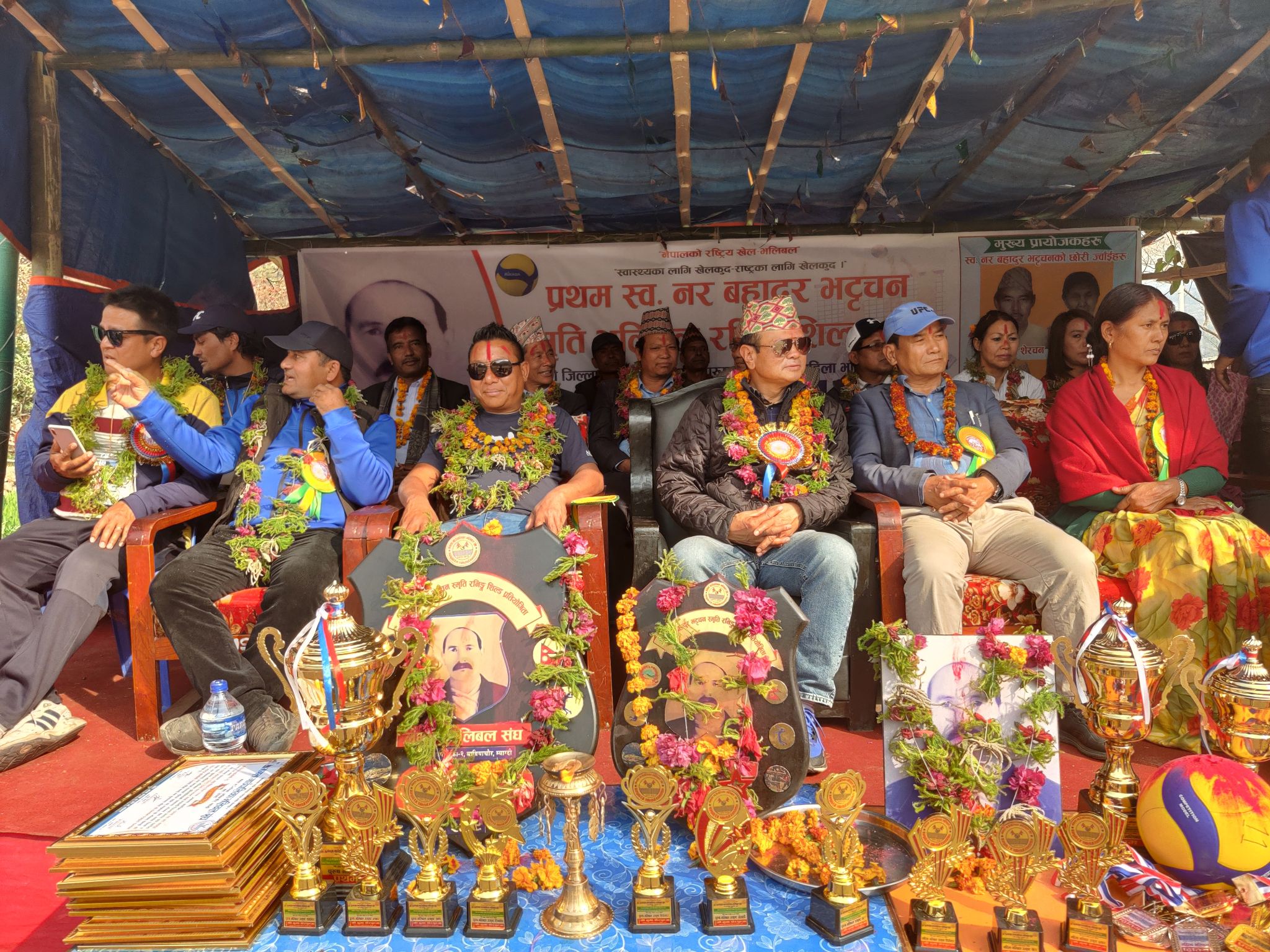 उद्घाटन समारोहको अध्यक्षत मंगला भलिबल संघका अध्यक्ष मुक्तमान केसी, स्वागत सचिव रामबहादुर गुरुङ र सञ्चालन सचिवालय प्रमुख कृष्णप्रसाद सापकोटाले गर्नुभएको थियो । बावियाचौरमा समाजसेवी स्वर्गीय नरबहादुर भट्टचन स्मृति आयोजित भलिवल रनिङ्गकप प्रतियोगितामा पुरुषतर्फ प्रथम द्वितिय हुनेले क्रमशः एक लाख रुपैयाँ र ५५ हजार रुपैयाँ सहित ट्रफि मेडल र प्रमाण पत्र पुरस्कार प्रदान गरिने छ ।